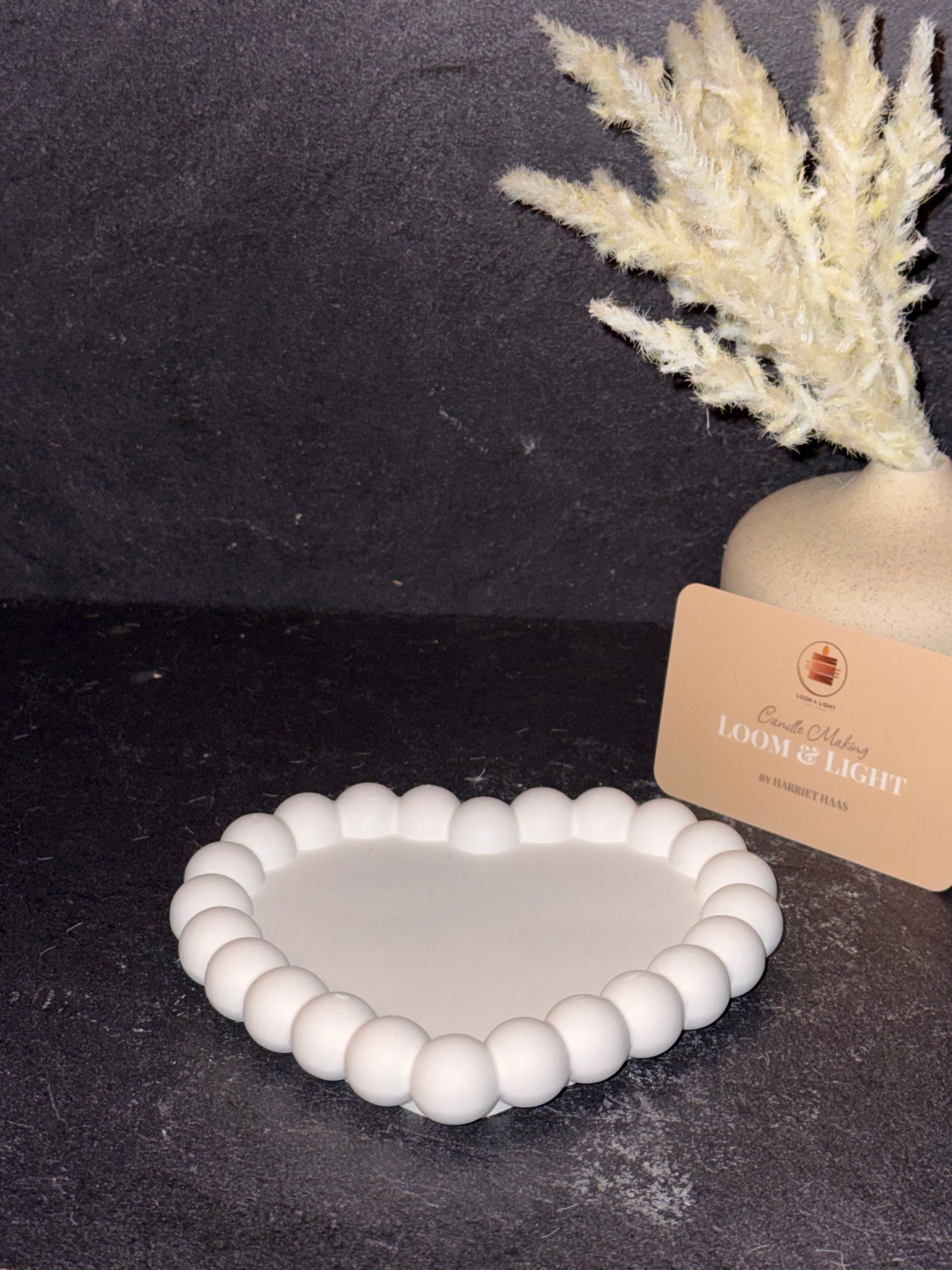 Der handgefertigte Bubble-Untersetzer in Herzform ist ein stilvolles Accessoire für deine Loom&Light-Kerzen. Mit seinem geschwungenen Design und dem markanten Kugelrand vereint er moderne Eleganz mit liebevoller Handarbeit.
