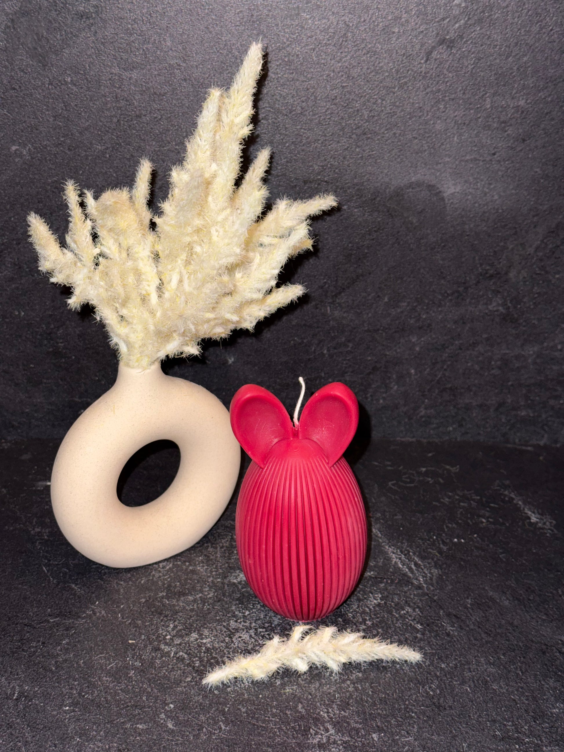 Die elegante Ei-Form mit feinen vertikalen Rillen wird durch zwei stilisierte Hasenohren ergänzt und macht diese Kerze zu einem besonderen Blickfang in deiner Frühlings- und Osterdekoration.