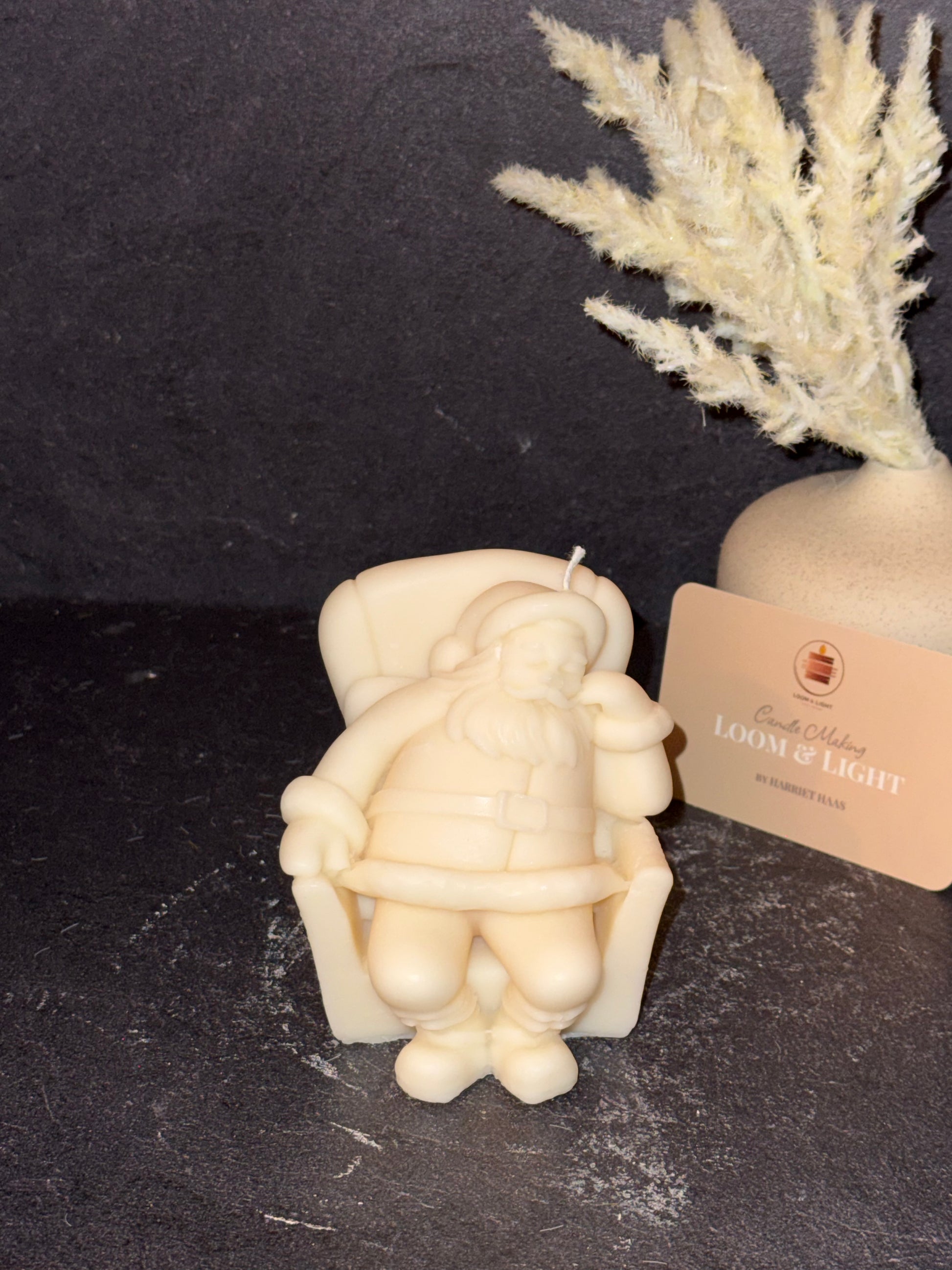 Die Weihnachtsmann-Kerze im Sessel ist ein echtes Highlight für die Adventszeit. Mit ihrem detailreichen Design und der liebevollen Handarbeit verleiht sie jeder winterlichen Dekoration einen besonderen Charme.